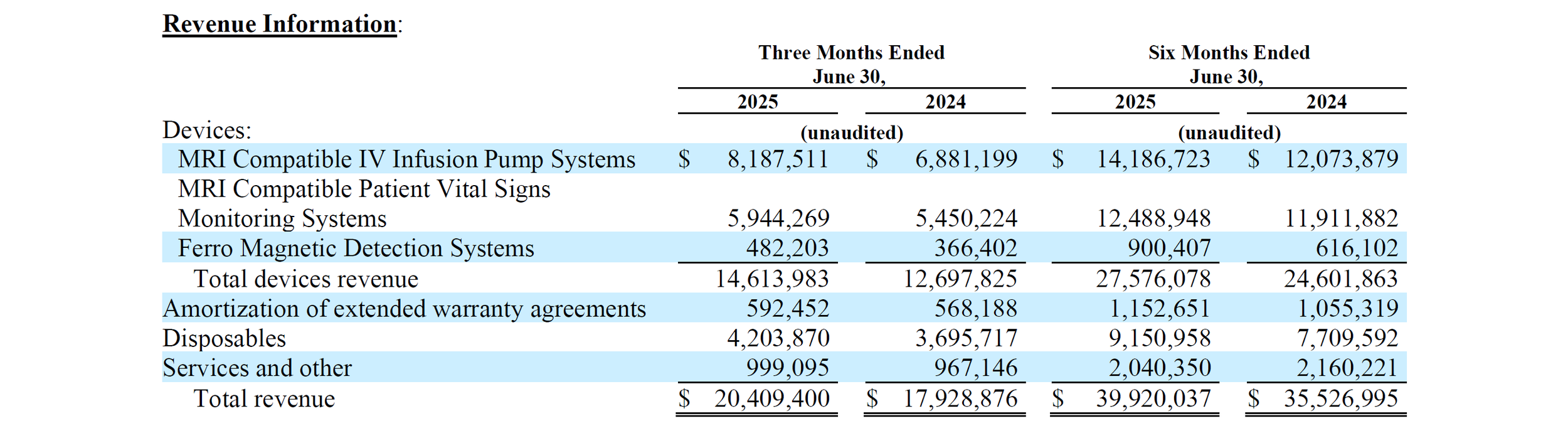 “We are proud to report our sixteenth consecutive quarter of record revenue, reaching $20.4 million in the second quarter of 2025, a 14% increase year-over-year. Our GAAP diluted EPS of $0.45, up 18% year-over-year and an increase of 22% from the first quarter of 2025, which exceeds our guidance and reflects our relentless focus on operational excellence. Our gross profit margin for the quarter was 78%, driven in part by increased overhead absorption as we ramped up finished goods inventory ahead of our move to our new facility on July 7, 2025. We have a record backlog for our pump and monitor products as of June 30, 2025, which underscores unprecedented market demand, and reinforces our growth trajectory. While we anticipate some operational inefficiencies in the third quarter of 2025 as we settle into our new facility, which may moderate our EPS growth, we believe that our expanded capacity and the commercialization of our next-generation MRI-compatible IV infusion pump, beginning in late 2025 and accelerating in early 2026, will help drive sustained growth and deliver long-term stockholder value,” said Roger Susi, President and Chief Executive Officer of Iradimed.